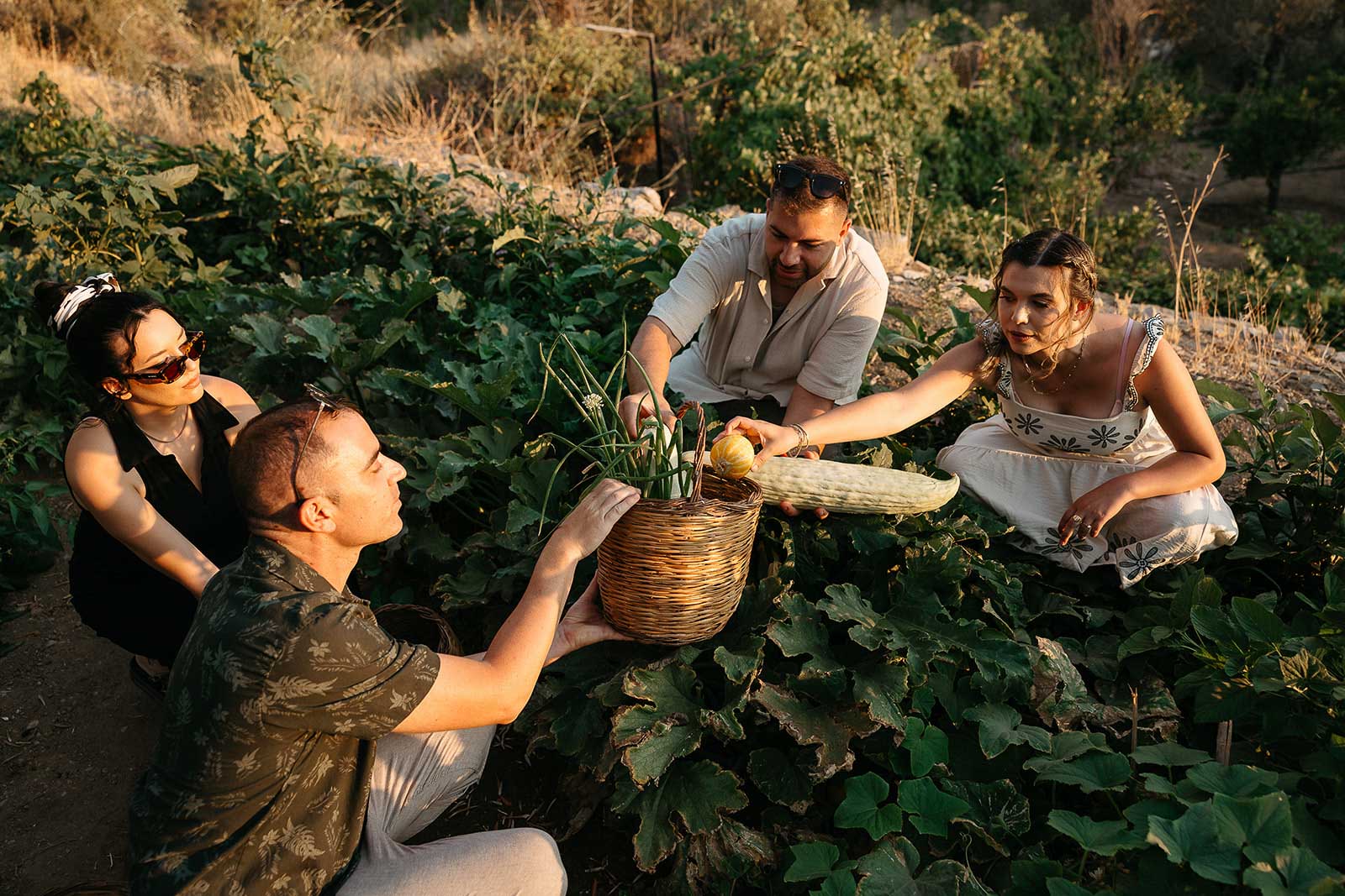 In the fertile valley of Potamia, our family invites you into a real Naxian garden kitchen. Harvest what’s in season, cook time-honored recipes with local olive oil and cheeses, and discover the aromas of island herbs. We end every class at a shared table—good food, local wine, and easy conversation. Small groups, private sessions on request, and optional village or garden walks make it a rich, memorable experience.